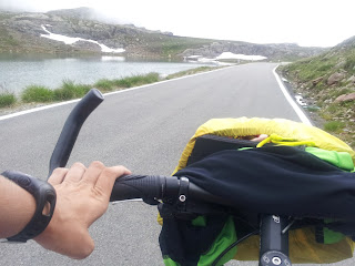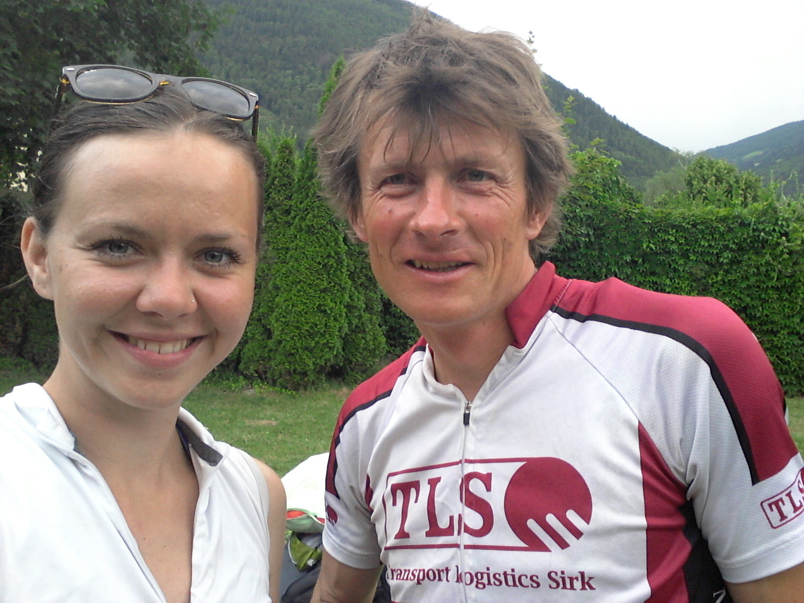 Težko sem začela pisat ta blog post, saj se je toliko vsega zgodilo, toliko čudovitih razgledov, trenutkov, spominov. Bi pa rada predstavila, da se da potovat s kolesom tudi drugam, kot samo na morje in po ravnih cestah. Preživela sva prečudovit dopust v hribih s kolesom, čeprav se marsikdo čudi zakaj sva šla ravno tja, poletje je, vroče je, čas za morje. Ampak v hribih ni bilo prevroče, ravno prav, ponoči je kdaj pa kdaj tudi zazeblo. Gledala sem slikce iz Dolomitov, ki so me čisto prevzeli in navdušili, našla sem par kolesarskih tur, nobene sicer z na polno naloženim kolesom in šotorom. Toni je želel nekaj dolgih tekaški treningov, zaradi priprav za 168 km dolg Ultra-trail du Mont Blanc konec meseca avgusta, tako da odločitev ni bila težka, čeprav še dva dni pred začetkom dopusta nisva točno vedela kam in kako greva. Ampak seveda, jasno – greva v hribe! Ne moreva pa drugače kot s kolesom, zaradi moje poškodbe, žal še zmeraj ne morem tečt, kot bi želela. En vikend pred dopustom smo s kolesom šli iz Ivančne Gorice na Krk, kar mi je bil test, kako bo poškodba vplivala na kolesarjenje, a ni bilo nobenih težav. V sredo dopoldan, po mojem dežurstvu, sva napakirala torbe in šla na pot. Kako dobro! Že za prvi dan nisva vedela točno kam naju bo pot zanesla, kaj šele za prihodnjih 18 dni, ki jih imava na razpolago. Ni me motil občutek nejasnega cilja, kvečjemu sem občutila totalno svobodo. Prvi postanek je bil v Radovljici pri Iztoku, z Majo sta nama prijazno ponudila prenočišče v čisto novem, še nedotaknjenem apartmaju, ki ga oddajata – opremljen z izdelki iz taljenega stekla Maje Zaplotnik (prekrasno!). A pot naju je nesla naprej, v moj omiljen kraj, v Mojstrano. Naslednji dan sva se ustavila v Kranjski Gori pri Matjažu in Heleni v DSO, nato pa se je začela samo najina odisejada po alpskih prelazih. Prvi cilj je nekako bil Passo dello Stelvio, naprej bova še videla, skrita želja pa ostaja, da prideva do Francije, do Chamonix-a. Tretji dan potovanja sva šla čez prvi prelaz: Passo d’Mauria (1298m.). Skrb, kako bom kondicijsko in predvsem v klance sledila Toniju je bila odveč, saj sem zamenjala cross gume za čisto ozke in sem z lahkoto dvignila povprečje, povrhu sem pa imela full lažjo prtljago. Še zmeraj je to pomenilo 19 kg, po nabavi v trgovini pa kakšno kilo več. Nisem mogla verjeti kakšna razlika je to v vožnji! Tonijevo kolo je bilo težko čez 50 kg. Ta podatek bi sicer najraje zamolčala. 🙂 V klance sem zmeraj precej zaostala, a vedno sem brez problema prišla do vrha. Četrti dan potovanja sva prvič zavila v kamp, v Cortini d’Ampezzo sva imela dan na off, a v bistvu ni bil čisto na off, jaz sem ga izkoristila za dolg sprehod do Rifugio Dibona (2083m). Hvala bogu za waschmachine, oprala sem celo žehto in posušila na sončku. Po tem sva spet pripravljena za preživetje “v divjini”. 😉 Iz Cortine se nisva odločila za Passo Giau in Passo Fedaia, temveč za Passo Falzarego in Passo PORDOI – vesela sem za to odločitev, saj mi je Pordoi bil eden izmed najlepših prelazov ter čudovito izhodišče za hribe, že dopoldan sva premagala prelaz in šla peš na Piz Boe (3152m), ki sem ga opazovala že iz Arabbe. Lahko dostopen, krasen vrh, kjer tudi poteka tekaška tekma Dolomites Sky Race. Na vrhu je precej turistov, večina jih pride iz Pordoi-a z gondolo na Sas Pordoi (2950m). Neskončno uživam v razgledih na številne pobeljene hribe in najvišji vrh Marmolado ter malicam pršut in kruh. Tukaj se pa čas čisto zares ustavi, nikamor se mi ne mudi. Iz Rifugio Forc Pordoi (2849m) nazaj do prelaza, kjer počivajo najina kolesa, je treba po melišču, ki ga še pokriva mehki vdirajoč sneg in zahteva kar malo spretnosti pri hoji. Opazujem ljudi, imajo kar težave na takem terenu. Tukaj z užitkom tečem dol in ubiram svojo lastno pot po neshojeni podlagi. Tonija udarec s kolenom v skalo za par dni oropa treningov. Izkoristiva jih pa za večjo kilometrino na kolesu, prej ko se zamisliva, že napadava Stelvio- asfaltno kačo, ki se v 48- ih serpentinah vije do višine 2757 nad morjem. Ta dan me precej boli hrbet, sem pa zadovoljna, da nimam nobenega muskelfibra ali težkih nog. Zjutraj me tudi malo trema daje, saj se utrujenost iz dneva v dan počasi kopiči, noč je bila prekratka, premalo počitka, ta dan bo pa treba premagati več kot 2000 višinskih metrov, grrrr… Čutim spoštovanje do tega dneva, a bom zmogla? Ampak seveda, da je šlo. Počasi in vztrajno. Passo d’Stelvio je drugi najvišji prelaz v Alpah, najvišji je v Franciji – za zgolj 13 metrov višji Col de I’Iseran (2770m). Iz Ponte di Stelvio, kjer je izhodišče za prelaz, se cesta ovinkasto vije nadaljnih 24,3 km do vrha, premagati je potrebno 1808 višinskih metrov. Povprečni naklon ceste je 7,4 %. Čudovito doživetje! Prelepa narava. Odspodaj sem opazovala zasnežene gore nekje visoko nad nama, čez par ur pa sva jim bila čisto blizu. Noro! Sploh potem spust v Švico je bil prekrasen..jaz sem bila čisto raznežena in happy… svizci, kravice, neskončni pašniki, reke, gozdovi, neokrnjena narava. Takšna tišina in mir! Prvo mesto v Švici je bilo Santa Maria – komaj kakšnega človeka sva srečala, kot da sva prišla na drug planet. Vse trgovine ob 18:35 že zaprte. En gospod je samo za naju še odprl trgovino, oz.naju spustil iz skladišča noter, sem prepričana, da je mislil da potrebujeva kruh, hrano. Midva pa najprej po muslije za zajtrk, da ne bi čudno izpadla, pol pa že iskala hladilnik z mrzlo pijačo.:) Italijanske trgovine skoraj ne poznajo takih hladilnikov, zato sva na vse žive načine morala hladiti pire. Eden izmed načinov je bil sneg, ki ga je Toni na visokih prelazih nagrabil in stlačil v hladilno torbo. In takole sva bila na poti do St. Moritza, ki me je čisto fasciniral. Mesto, polno atletov na višinskih pripravah, športnikov, kolesarjev, turistov… Švica je majčken izropala denarnico, a itak sva zaprav