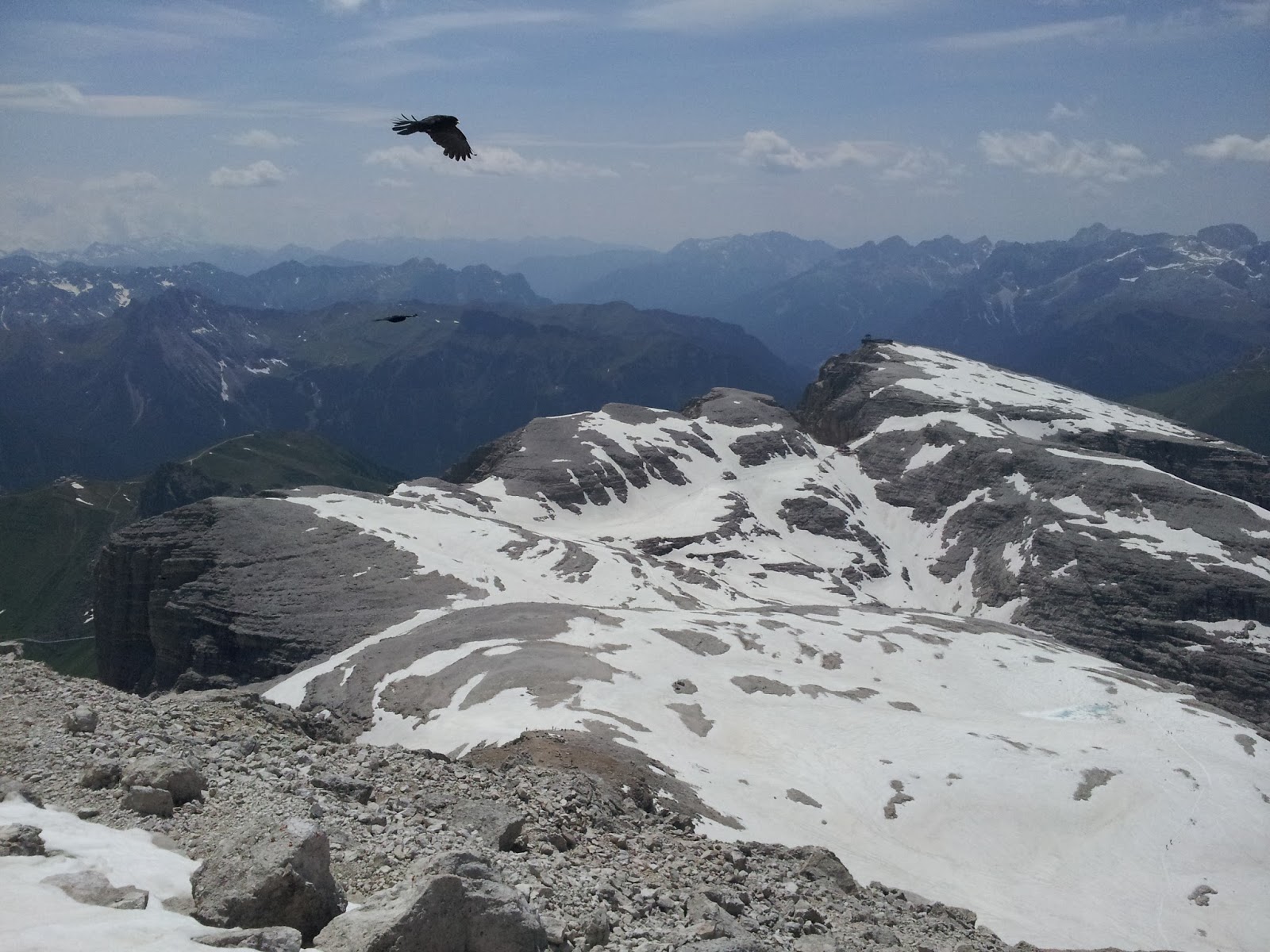 | Passo Pordoi iz poti na Piz Boe, levo Marmolada (3343 m.) |