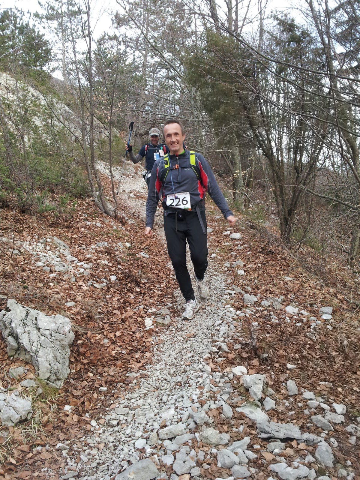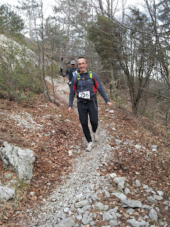 Kaj sploh naj rečem o tako dolgi poti, katero smo večji del prehodili? Bila je neskončno dolga… kilometri niso šli nikamor, čas pa je prehitro tekel.. družba je bila fantastična, skoz enga smeha in dogodivščin, pa tudi resnosti iz zatopljenosti vsak v svoje misli. Občasno smo se ločili, eni smo šli naprej, drugi so zaostali, a zmeraj smo se spet na kaki točki vsi zbrali in nadaljevali skupaj. Cel dan sem bila fantastično razpoložena, polna energije in zagona. Full mi je bilo vse skupaj prepočasno, kar sem se še najbolj zavedala po devetih urah, ko smo naredili šele maratonsko dolžino…to je bil najdaljši maraton v življenju vseh nas prisotnih. 🙂 Sama pot nas je čisto fascinirala – razgledi, pokrajina…ampak za tek pa obupno težka! Jaz sem obula napačne superge, ki sploh niso za kamne, skale, na koncu sem plačala davek s parimi žulji in strašno pekočim podplatom. Noro smo uživali, sploh na poti do Učke, čez zasnežen gozd..to je bila prava pravljica. Potem se je počasi začela kalvarija, sploh ko je zašlo sonce. Z Borisom sva šla naprej, saj sva bila polna energije, Matjaž in Roman sta zaostala. Pogovarjava se vse mogoče in kujeva plane prihoda v cilj. Jaz še kar govorim, da bova na cilju še ponoči. Boris se zaveda, da o tem lahko samo sanjava, da bo pot še precej daljša. En čas nama gre zelo dobro, veliko tečeva in prehitiva kar nekaj ljudi. Ker imam boljšo čelko, grem naprej in naju vodim po sicer zelo dobro označeni poti. Dokler ne prideva do ceste, ki vodi za Rabac, sva na višku najinih moči in motivacije, potem pa pade napačna odločitev – s pomočjo še enega tekača se odločimo it levo dol za Rabac, ker ne najdemo več markacije. Naredimo 2-3 dodatne km, pot pa itak napačna. Zgubimo dobre pol ure. To me psihično totalno uniči, demotivira, izgubim voljo. Končno najdemo pravo pot – samo čez cesto bi mogli it, po zajlah v kanjon, zelo adrenalinsko, sploh ker je noč. Spet se nekaj lovimo glede markacij in KT, a jaz totalno znorim, da se držim še samo belih listkov in ne briga me nobena druga markacija več in ne poslušam več nobenga.:) Vsak dodaten meter mi je bil odveč. 🙂 Borisu se na tem mestu opravičujem za mojo slabo voljo, čeprav on pravi, da moja trma glede na razmere sploh ni bila huda. 🙂 Za seboj vidim hordo lučk, kar me še bolj demotivira…prej nikjer nobenga, sedaj pa, kar sva s tekom prej pridobila, sva sedaj vse in še več nazaj izgubila. Nekak le prilezeva do kontrolne postaje (Labin), kjer dobimo vrečo osebnih stvari, obleke in hrano, kar smo pač oddali ob prevzemu številk. Do sem me že tako načne zaspanost, da še komaj živim. Fizično ne čutim nobene utrujenosti, od zaspanosti pa se mi blede, začnem halucinirat, ne vem več kaj govorim. Šele ko slišim svoj glas, se zavedam, da nekaj govorim. V moji glavi se vse dogaja z zamikom. Orientacijski bel listič, ki visi z drevesa je človek, ki pleše, palica na tleh je kača, kamni pa razne manjše živali. Sem tako otopela, da četudi bi bile v realnosti te razne živali, najbrž ne bi niti trznila. Toni mi pošlje par sporočil iz Maroka, ki me vsakič predramijo in razveselijo…za nekaj časa se zbudim, nato pa mučenje z zaspanostjo naprej. Na KT v Labinu žal izgubimo Romana, ki odstopi, saj ima prehude žulje. Občudujem ga, da je sploh prišel do te točke in da nam je na poti prispeval toliko dobre volje ter zvrhano mero optimizma. Z Matjažem sta bila dream team! Komaj odprem vrečko s svojimi stvarmi in napadem rižev narastek, se usujejo 4 punce in še kup enih ljudi. Motivacija mi še bolj pade, zdaj se zavem, da sem res med zadnjimi in še bolj mi postane vseeno za vse. Ne ljubi se mi nadaljevat, a ne dvomim vase…vem, da bom to še pregurala, čeprav je pred nami še 20 km. Še dobro, da se ne zavedam, da to pomeni še kakšnih 5 ur (ugibam, kajti niti enkrat nisem pogledala na uro). Spet gremo cela zasedba skupaj naprej, razen Romana. Jaz spim med hojo. Vsak spodrsljaj ob kamen me za hip predrami, nato spet spim…tako se mučim, dokler se ne naredi dan. Šele sončna svetloba me spravi k sebi. Enkrat grem na wc, takrat vse izgubim, hitrejše ne morem dohitet, Kristi in Robi zaostaneta, prepričana sem da me bosta dohitela, a me ne. Imata 60 km več za seboj kot jaz, tempo jima upade. V bistvu mi paše da sem sama. Vse je ok, dokler ne dohitim Matjaža, vprašam ga koliko km je še do konca. Odgovori: “11.” Jaz se samo obrnem, začnem korakati naprej, usujejo se mi solze. Čutim pekoč podplat, začnem sovražit kamne, skale, to zajebano podlago. Nimam pravih superg. Žulji me pa v bistvu sploh ne ovirajo, čeprav jih imam po dva na vsaki nogi. Prvič sprobam