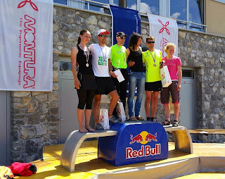 Kristi me je vabil, naj spijem pivo z njim, a mene je pivo čakalo šele za ciljno črto! Rekla sem mu, da grem počasi naprej, saj me bosta kmalu dohitela. To se začuda ni zgodilo. Vse do cilja sem ostala bolj ali manj sama. Na tranziciji sem naredila eno neumno napako, da sem preobula štunfe. Vlečt kompresijske nogavice na prepoteno nogo je res nekaj boljšega. 😉 Na 70-em km me je pričakal moj Toni, krči v mišicah so ga naenkrat pobrali. To mi je povedal že prej po telefonu. Sem bila zelo žalostna, da se mu ni izšlo. Kakšne tri kilometre je še tekel z menoj, a je kmalu videl, da ne bo zmogel in je na tej točki odstopil. Zapeljali so ga v Vipavo, od koder me je vsake toliko poklical, me updejtal z informacijami in me bodril do cilja. Po tem, ko sva se ločila, sem začela narahlo čutiti bolečo mišico tibialis anterior, ki sem jo šele dobro sanirala 2 tedna prej. Bolečina se je začela naglo povečevati, do cilja pa je bilo še 30 km. Namazala sem se s konjsko kremo in razmišljala kako bo šlo naprej. Še vzpon, nato spust do Podnanosa, nato 2 urni vzpon (1000 višincev) na Nanos, nato pa še vsaj 2 urni spust do cilja… Počutila sem se odlično, psihično in fizično, razen bolečina v mišici je bila skoraj prehuda. Vedela sem, da če se bo še stopnjevala, da ne bom mogla zaključit tekme. Počutje je bilo pa tako fenomenalno, da bi bilo res škoda, če bi morala odstopiti. Dobila sem sporočilo od Drejka team-a, da ko se mi bo zdelo težko, naj si predstavljam da sta ob progi in z mehiškim valom navijata zame. Ujele sta me ravno v trenutku slabosti, v klancu na Sv. Socerb in v hipu se mi je vrnila vsa pozitivna energija. Poznati tako krasne in nesebične ljudi, to je največ, kar lahko dobiš in imaš v življenju! Pritekla sem do postojanke v Podnanosu, kjer me je toplo sprejela množica navijačev. Čudovito vzdušje, kar poneslo me je na Nanos! 🙂 Vzpon mi ni delal težav, najbolj sem se bala kaj se bo dogajalo iz vrha proti cilju (zadnjih 13 km bolj ali manj spusta). Na Nanos sem uživala, da sploh ne morem opisati… prižgala sem mp3 (drugače skoraj nikoli ne poslušam glasbe med tekom), da sem odmislila bolečino v nogi in neznansko uživala v setlisti komadov izpred petih, šestih let, ko sem začela tečt. Bloc Party, Caribou, Franz Ferdinand, … kar smejalo se mi je in proti vrhu, medtem ko me je močna burja “premetavala”, sem plesala in pela v dežju … ter bila hvaležna celotnemu stvarstvu, da se po skoraj stotih kilometrih za seboj počutim tako odlično. Upam, da me ni kdo od kje daleč opazoval, saj verjetno nisem zgledala ravno prisebno! 🙂 Oblekla sem jakno – polivalo se mi je iz bidona in sem kratko majico imela čisto premočeno, pihalo je za znoret in me je začelo zebst. Pri spustu se je začela kalvarija z zaspanostjo, a uživala sem ob glasbi ter stiskala zobe, da mi noga zdrži… če ne bi bilo te bolečine v tibialis anterior, bi poletela v dolino, saj ostale mišice niso bile skoraj nič utrujene. Tako sem pa v dolino šla kot po jajcih. Ko sem najbolj trpela, sem dobila sporočilo še od mame. Da mi gre super in da me spremlja in da je zelo vesela. Oči so se mi zarosile in dala mi je nov zagon, da zdržim do konca. Od Abrama naprej je bilo še kakšnih 6 km spusta, od tega kakšen kilometer in pol ravnine … tam sem kar zahodila, težko sem se pripravila v tek, saj je bolečina bila, ne bom rekla neznosna, ampak zelo huda. Tekla sem lahko izrazito na peto, nisem mogla stopiti na prste. Na dveh točkah so imeli zakurjen ogenj in navijali za nas. Prehitel me je Marjan Vilhar, tako da sem na cilj pritekla kot osma absolutno in na drugem mestu v ženski kategoriji. Štartalo nas je 74 tekmovalcev, 19 jih je odstopilo. Ko sem nekje od daleč slišala glasbo iz kampa Tura, kjer je bil ciljni prostor, sem bila res nepopisno vesela. Komaj sem čakala, da objamem Tonija. Vedela sem, da me pričakujejo prijatelji, a tako toplega sprejema v cilj pa nisem pričakovala! Hvala Brane in Mateja, da sta me pričakala! In Matjaž, Helena & co. super ste bili!! Pa Darinka in Igor… hvala za navijanje! Nisem pričakovala takšnega časa, niti takšne uvrstitve. Vem pa, da če ne bi imela tako stresne službe in bi več energije in časa vložila v tek, bi mi lahko šlo veliko bolje.