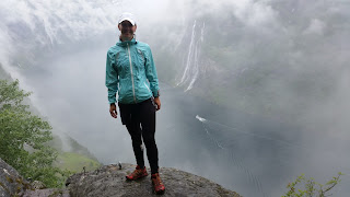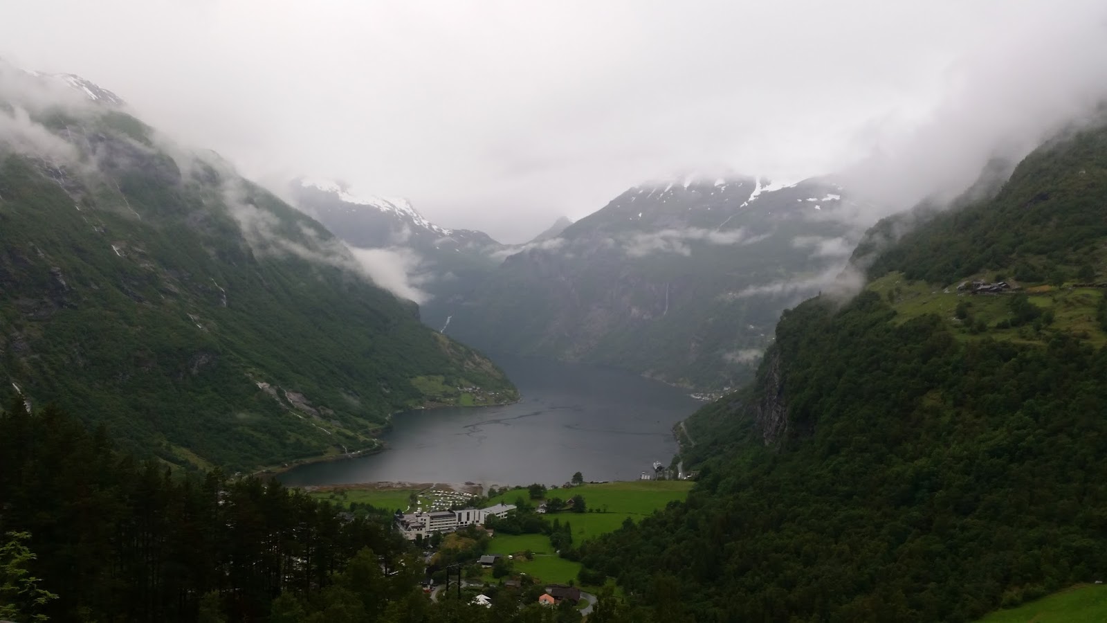 Na tem mestu sem imela dovolj mest, čeprav je vsako po svoje zelo lepo, imela sem pa tudi dovolj vožnje. Pravzaprav sem doživela eno manjšo krizo in obžalovala, da sva šla tako daleč. Kje je sonce, kje so hribi, kje je narava? Pretežno sva imela dež, okrog 15 stopinj maksimalno. Zapeljala sva se do Holmenkollen-a, kjer sva tik pod skakalnico prespala v avtu. Bilo je še veliko drugih avtodomov na parkirišču, tukaj še nisem dojela tega, da lahko prespiš kjerkoli, razen kjer ni izrecno prepovedano kampiranje. Na celotnem potovanju sva vse noči prespala v kombiju, niti enkrat nisva šla v kamp. Skandinavija je raj za avtodomove, saj lahko prespiš kjerkoli, razen seveda na privatnem zemljišču, 150 metrov vstran od hiš ter ne smeš se na enem mestu zadržati več kot 24 ur. Na vsake par km so urejena počivališča, največkrat na lepem mestu z razgledom. Višje na sever greš, lepše je, bolj neokrnjena je narava! Prispela sva v mesto Lom, blizu katerega je izhodišče za najvišji Norveški vrh Galdhopiggen, 2469 m. Ampak vreme ni bilo primerno za vzpon na vrh, zato sva se odpeljala do fjorda Geirangenfjord, ki slovi kot eden izmed najlepših fjordov. Toni bi naj opravil trening, jaz pa se peljala z ladjico po fjordu. A ko sem se zbudila v megleno in deževno jutro, mi ni bilo za ladjico. Skupaj sva tekla/hodila do vasice Skagefla mimo Homlongsaetre (550m), po pravi džungli, razmočenem in spolzkem terenu, da nikamor nisva prišla – za 5 km sva potrebovala 2 uri. V kombiju so se nama iz dneva v dan kopičile mokre cunje in premočene superge. Je bila pa ena izmed lepših izkušenj, saj sva bila nagrajena za razgled iz naslovnice mojega Lonely planeta – največji slap Geirangenfjorda, šla sva pa tudi mimo idiličnih in tipičnih hišk s pokrito travo na strehah. Značilnost fjordov je, da se hribi strmo dvigajo nad njimi, to jim dale tisto veličastnost. Domačini so posamezne težko dostopne predele v preteklosti skrbno predelovali, izkoristili kratko poletno obdobje za kot neke vrste planšarske barake. Te čudovite ohranjene hiške lahko turisti še danes opazujejo med vožnjo z ladjicami po fjordih.