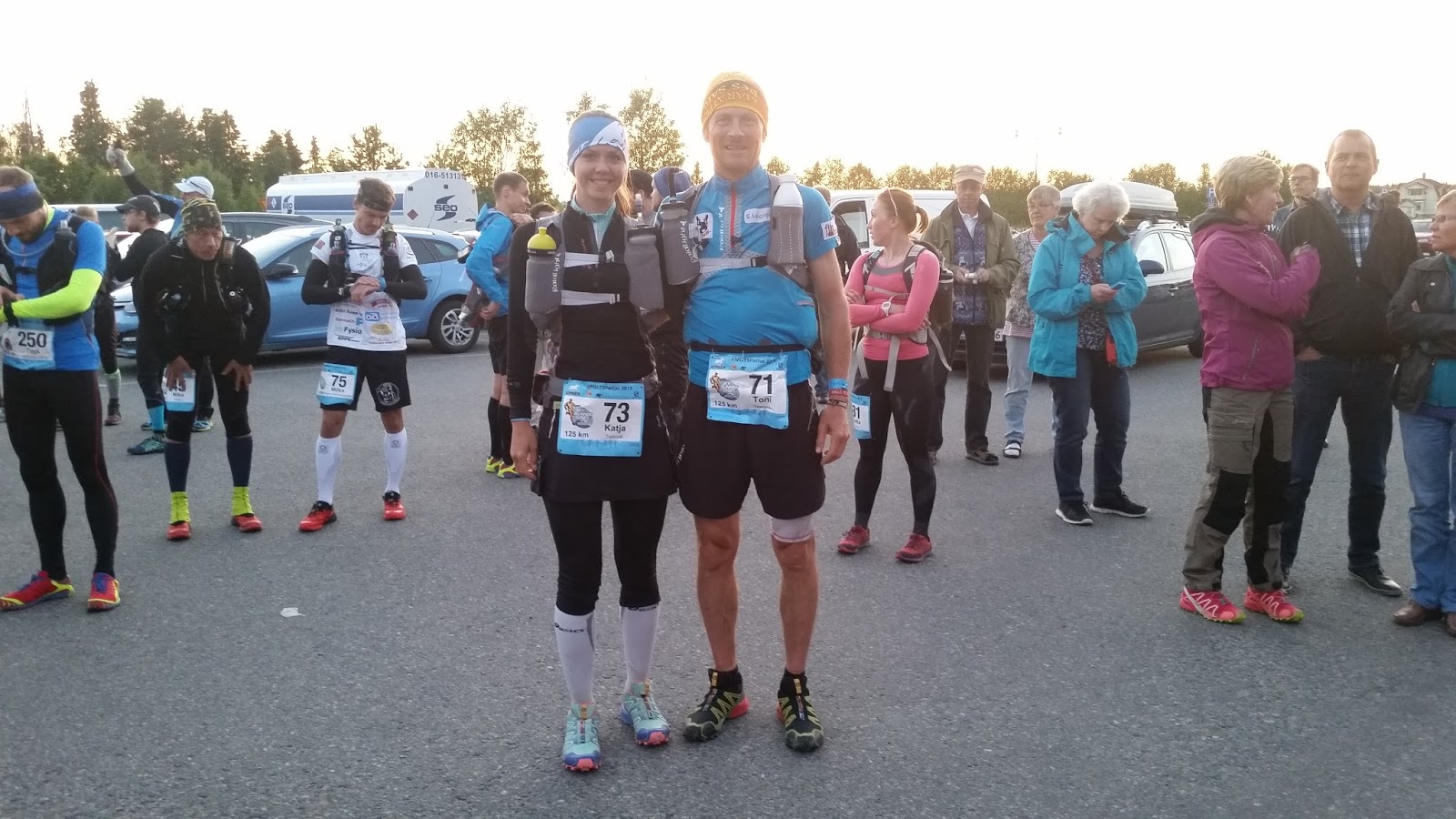 V Hetto, nacionalni park Pallas Yllastunturi sva prišla dan pred tekmo, takoj naju je pozdravil organizator, s katerim je Toni bil že prej na vezi, da sva kot “povabljena” tekmovalca dobila brezplačno štartnino. Predlagal nama je, da se odpeljeva par metrov više na bivši kamp plac oz.kamp, ki obratuje samo pozimi, kjer sva ves vikend bila sama. Odprt je bil celo dostop do umivalnika s toplo vodo. Pod nama pa je bil štartni prostor in vso dogajanje. Večina jih je spala v bližnjem hotelu Lapland Hetta. Laponske sem se najbolj veselila zaradi prebranih knjig Arta Passiline in sedaj sem bila tukaj. Na Finskem sva imela sončne in tople dneve. Žal pa nama je zmanjkalo časa, da bi obiskala najvišji vrh Švedske in Finske, bila sta nama dokaj na poti, vendar sva morala počivati pred tekmo, po tekmi je pa bila spet vlažna vremenska fronta. Gre za kar oddaljene vrhove, kar pomeni dvo ali tridnevne pohodniške ture. Dan prej sva na easy tekla do bližnjega jezera in me je močno bolelo levo koleno, tako da sem bila precej zaskrbljena. Cel naslednji dan sem počivala. Ob pol desetih zvečer so nas peljali z avtobusom v Yllas – uro in pol vožnje vstran. Iz Yllasa bomo tekli nazaj v Hetto. Opremljeni smo bili z GPS sledilno napravo, saj smo pretežno tekli po divjini, daleč od civilizacije. Na štartu je bilo malo hladno, a svetlo, to je bil Midnight Sun Trail – ob polnočni smo še vedno gledali sonce. Prvi ultratek, kjer nisem potrebovala naglavne svetilke. Toni je imel v začetku kar nekaj težav, in sva se še 45 minut po štartu že tretjič srečala na progi. Malo me je skrbelo zanj, a mu je naprej šlo dobro. Sama sem pa skoz po malem bila čudne volje, raje bi bla z mojim možem nekje na poti po Švedskih gozdovi s šotorčkom, na easy, kot tukaj, na tekmovanju. Narava je bila krasna in dejstvo, da se gibam nekje na severu Finske je bilo noro! Ampak po 65ih km borovničevja in cikcakanja ob podrtih drevesih se mi je že mešalo. Tonija sem klicala, da ne vem kako bom zdržala ta teren, da mi je grozno dolgočasno. On je imel iste probleme. Pa tudi tečt se ni dalo hitro, ker je bil teren kar zoprn. Večkrat je bilo močvirnato, čeprav so imeli speljane lesene potke, ampak v supergah sem imela kljub temu nenehno mokro. Pokasirala sem številne žulje. Na tranziciji, na 65em km sem želela odstopiti, kar tako, ker se mi ni ljubilo več tečt in mučit samo sebe, ampak sem zagledala celo čredo severnih jelenčkov in sem bila čisto impresionirana, potem mi je pa volunterka rekla, da je naslednja punca za menoj 5 km (po tem težkem terenu je to pomenilo sigurno skoraj 1 uro), Toni pa mi je rekel, da me po tranziciji čaka precejšen vzpon, kjer bom imela lepe razglede in naj uživam v razgledih… vse to je pripomoglo, da sem pozabila, da sem tukaj mislila odstopit. 🙂 Pa je bilo kar je bilo, čakalo me je 45 km terena ala Krk trail, kdor je tekel, ve kakšna muka je to, po špičastih skalah, kjer človek še hodi težko, kaj šele teče. 26 km pred ciljem sem zapadla v jok, saj kilometri niso šli nikamor. Res da me noben ni prehitel, to je bil znak, da nekako držim tempo, a kljub temu se mi je zdelo, da se pot vleče v neskončnost. Na okrepčevalnicah so že vsi vedeli za moje ime in me vzpodbujali, spraševali kako se počutim. To mi je dalo krila, da sem premagala pot. Po kalvariji s kamnito podlago me je čakalo še 10 km pretežno ravnine po makedamu in zadnje 3 km po asfaltu. Ker fizično nisem imela nekih večjih težav, sem to lahko odtekla okrog 10km/h. Problem mi je delala psiha, saj so se mi ves dan vsiljevale same negativne misli. SMS so mi poslali Brane, Mateja in Brina, sem bila res vesela, potem pa še Tilen. Kar neslo me je proti cilju, tukaj sem vedela, da mi bo ratalo do cilja in da so ostale punce daleč za menoj, sedaj že skoraj dve uri. Ena punca, domačinka se je vozila vštric z menoj s kolesom, pogovarjali sva se in tako sem kmalu zagledala ciljni prostor, kjer me je čakal moj Toni, že dobri dve uri pred menoj je prišel v cilj. 🙂 Po 16ih urah 27 minutah sem stekla čez zmagovalni ciljni trak, bila sem prva od punc in osma absolutno, kar je bil res nor občutek! Rekla sem jim lahko le to, da je bila tekma lepa, a nikakor ne enostavna in da sem imela številne težave. Objel me je moj mož, saj ga je zelo skrbelo zame, glede na to, kako sem pred parimi urami jokala v telefon. Ampak ciljna črta je zabrisala te slabe spomine, ostali so le najlepši. Čeprav Toni ni zmagal v absolutni konkurenci, bil je drugi, sva vseeno bila glavne zvezde tam. 🙂 Tekači smo imeli na voljo brezplačno savno. Ko sva dajala intervju za lokalni časopis iz jacuzzija sem se zamislila, da res nisva čisto normalna – za nama je nora zgodba, sedaj pa si končno zasluživa počitek. Splačalo se je zgarat teh 125 km, za nagrado za 1.mesto sem dobila novo uro Suunto Ambit 3, ki je na trgu vredna 500eur. Organizator tekme nama je v dar dal vsakemu en buff s finskega traila, midva pa njemu gajbo Stezičarja še za ostale v organizaciji. To je najmanj kar sva lahko storila, nenazadnje sva tudi avtobusni prevoz do štarta imela zastojn. Naslednji dan je pohvalil pivo in vso gajbo so pridno spraznili in vrnili. Poslovila sva se, poslovilo se je tudi lepo vreme na severu, zato sva pot nadaljevala proti jugu.
