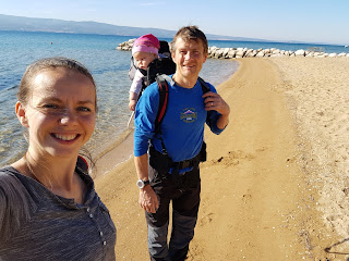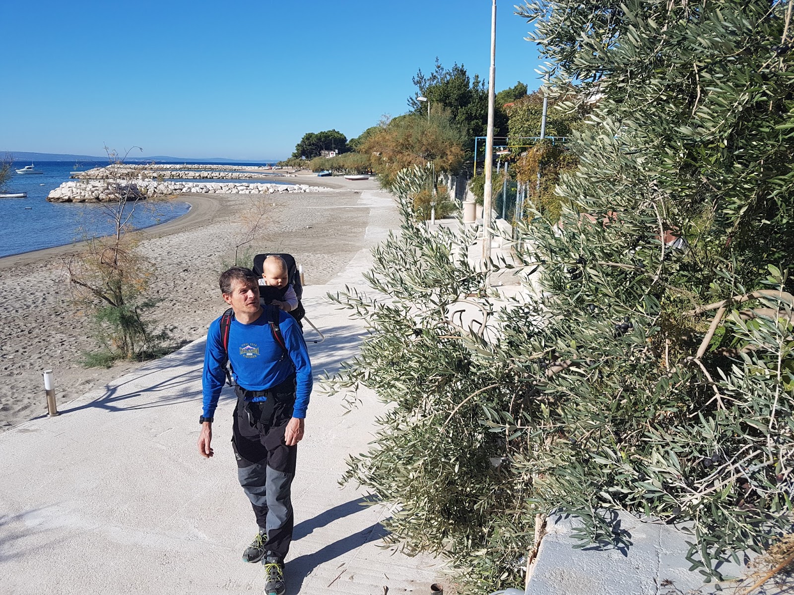 Na pot smo šli že v sredo, po Tonijevi službi. Sledi ista zgodba okrog pakiranja, kot vsakič, in sploh ne bom izgubljala besed, je bilo pa že na tem, da sploh nikamor ne gremo. Hani je bila že zelo zaspana in orto tečna, Toni pa s pakiranjem ni napredoval nikamor. Konec dober, vse dobro… malo pred peto uro popoldne nam je le uspelo speljati iz Dolenjske, Hani je pa spala vse do Šibenika in tudi naprej ni bilo težav, ji je bila zanimiva nočna vožnja, lučke in pojoče igračke. Ob pol desetih zvečer smo bili nastanjeni v isti sobici, kot lansko leto in Hani je že čakala postavljena prenosna otroška posteljica v sobi. Osebje v hotelu Damiani je res pozorno, prijazno in ustrežljivo. Hani je morala preplaziti še celo sobo, raziskati vse kotičke, nato pa zaspala kot ubita.