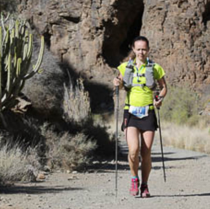 Helena nas je v petek zvečer ob 21:30 peljala na štart v Las Palmas. Ceste so bile zalite od celodnevnega deževja in tudi vremenska napoved ni bila najbolj obetavna, naj bi ponoči bilo zelo mrzlo in od treh do osmih zjutraj deževalo. V Las Palmasu je bila popolnoma drugačna zgodba, ceste suhe, temperature prijazne in vsi v kratkih hlačah. Še hiter skok na wc ter se zrinit v prvi boks, po ITRA točkah so me dodelili med prvih 100 tekmovalcev. Imela sem štartno številko 81, sicer nas je bilo na startu preko tisoč. Priznam, da sem bila precej napeta in samo želela sem, da se vse skupaj že začne. Štart je bil epski, pospremljen z ognjemetom na plaži de las Canteras v glavnem mestu Las Palmasu. Precej časa smo tekli po peščeni obali ob valovanju morja z številnimi navijači ob poti. Noro! Sama sem sicer ves fokus usmerila na podlago, da mi slučajno pesek ne pride v superge. Še na četrtem km se pozdraviva in zaželiva srečno pot z Ivijem, kar me navda najprej z skrbjo (kaj hudiča delam z Ivijem ob boku, a grem morda prehitro?) potem pa z navdušenjem – čutim, da je Ivi v vrhunski formi, njegov počasen začetek me spominja na Tonijevo taktiko in prepričana sem v njegov rek: “In zadnji bodo prvi!” Ivijeve besede, da nas bo pot sama razvrstila tja kamor pašemo, me je pomirila. Ne glede na vse okoliščine, tako bo kot mora biti in nič ne morem sedaj spremeniti. Skrbelo me je, da bom ponovno odstopila, saj so se takoj v začetku začele pojavljati težava za težavo. V začetnem delu je bil en res grd kamnit odsek in sem naredila par čudnih korakov in vsakič me je zabolelo v gležnju. Z lepšim terenom se je situacija izboljšala a nenehno sem bila pozorna samo na korak, da slučajno ne bi stopila napačno. Vmes so me dohiteli in prehiteli že naši Jan, David, Tešky, Dušan … Čeprav je Tešky napovedoval, glede na to, da imava istega “serviserja” Oskarja ponoči, da se me bo držal in šel z menoj, mu je bil moj korak prepočasen in je takoj odšibal naprej. Pred drugo okrepčevalnico sva se razšla z Dušanom, pasala mi je njegova družba čeprav za kratek čas, saj sem že bila v agoniji zaradi slabosti v trebuhu. Nič mi ni pasalo jest ne pit. Po štirih urah sem dohitela Teškya, (ponovitev zgodbe iz Dalmacije) z upanjem, da me bo zabaval s svojim humorjem, a na žalost se je tudi on boril s slabostjo in ni bil ravno pri volji za štose. Višinci so se po začetnem tekaškem delu kar nabirali in čeprav so me v začetku zelo skrbeli, mi je hoja v hrib vse do konca zelo ugajala. Želela sem si, da bi me konkretno stisnilo na veliko potrebo in si olajšala napetost v trebuhu pa da bi končno lahko začela piti in jesti po planu, saj sem do sedaj vse zamujala. Morda je bil kriv zadnji energijski shake uro in pol pred startom, ali pa pitje vode iz pipe (menda voda res ni pitna!). Prvič v življenju sem se soočila s prebavnimi motnjami in slabostjo. Ponoči je še nekako šlo in tudi Tonijev plan sem skoz presegala za okrog pol ure, proti jutru pa je šlo rapidno navzdol, kar naprej sem iskala grmiček, kamor bi se lahko skrila. Zmanjkalo mi je robčkov. V Tejedo na 73 km sem prišla čisto obupana. Toni je rekel, naj se ne sekiram: “samo počepni ob poti, briga te!”. Ampak nisem mogla se ne sekirat. Skoz me je tiščalo na wc, samo da sem naredila en požirek ali karkoli pojedla. Na vzponu proti Roque Nublu se za menoj usuje horda hitrih tekačev na 65 km. Kakor sem bila navdušena nad njimi in njihovem tempu, sem bila tudi jezna, saj sem se vsakomur mogla umikat. Moje spremstvo me je zamudilo na okrepčevalnici v Tajedi, kar me je za trenutek razžalostilo. Toni vse počne zadnjo sekundo in me zato zamudi, ampak sem se hitro pomirila, saj pravzaprav ničesar ne potrebujem, zakaj bi jim oteževala pot!?