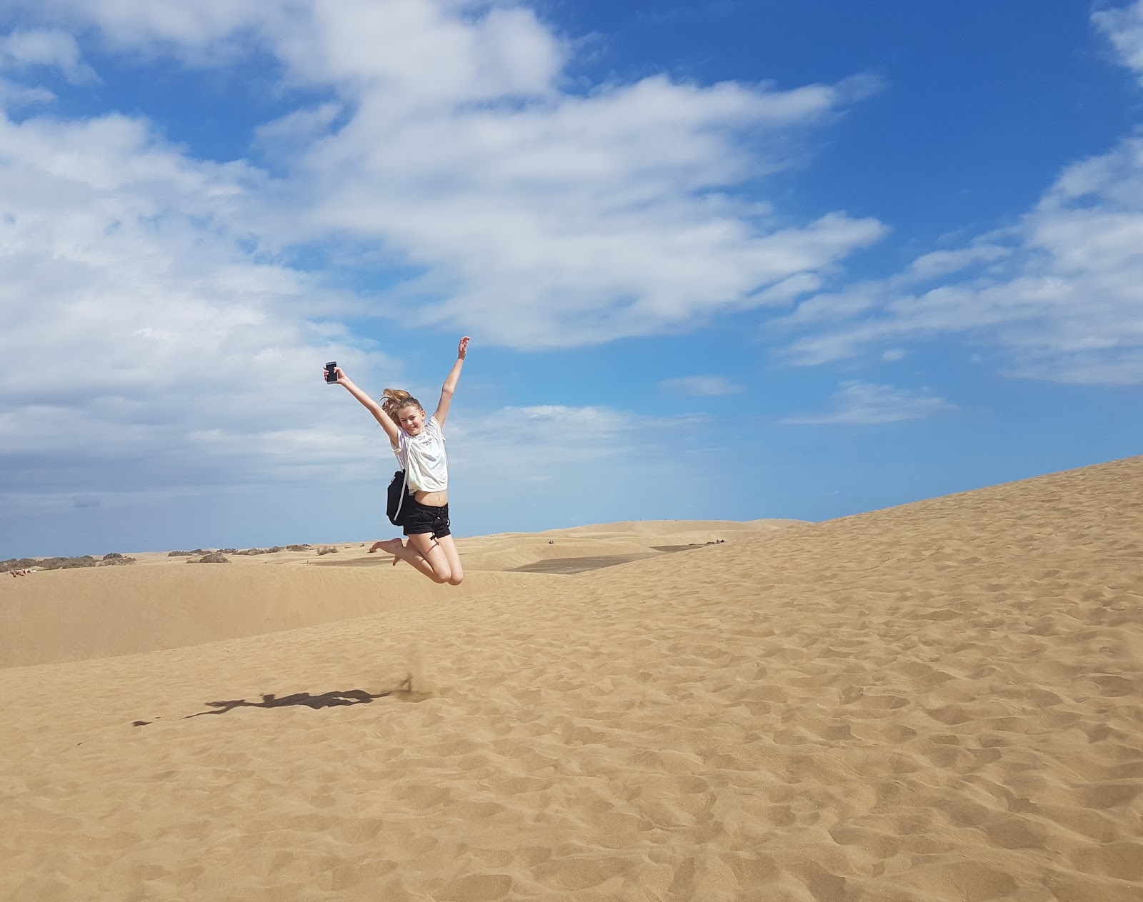 Potovanje na Gran Canario smo načrtovali že jeseni 2017, ko sem se prijavila na meni že poznano tekmo Transgrancanaria 125 km in 7500 višincev. Tri leta nazaj sem odstopila. Zara je že večkrat izrazila željo, da bi rada potovala nekam z letalom, tako ji je Božiček letos uresničil željo in prinesel letalsko karto njej in njeni sestrici Hani.