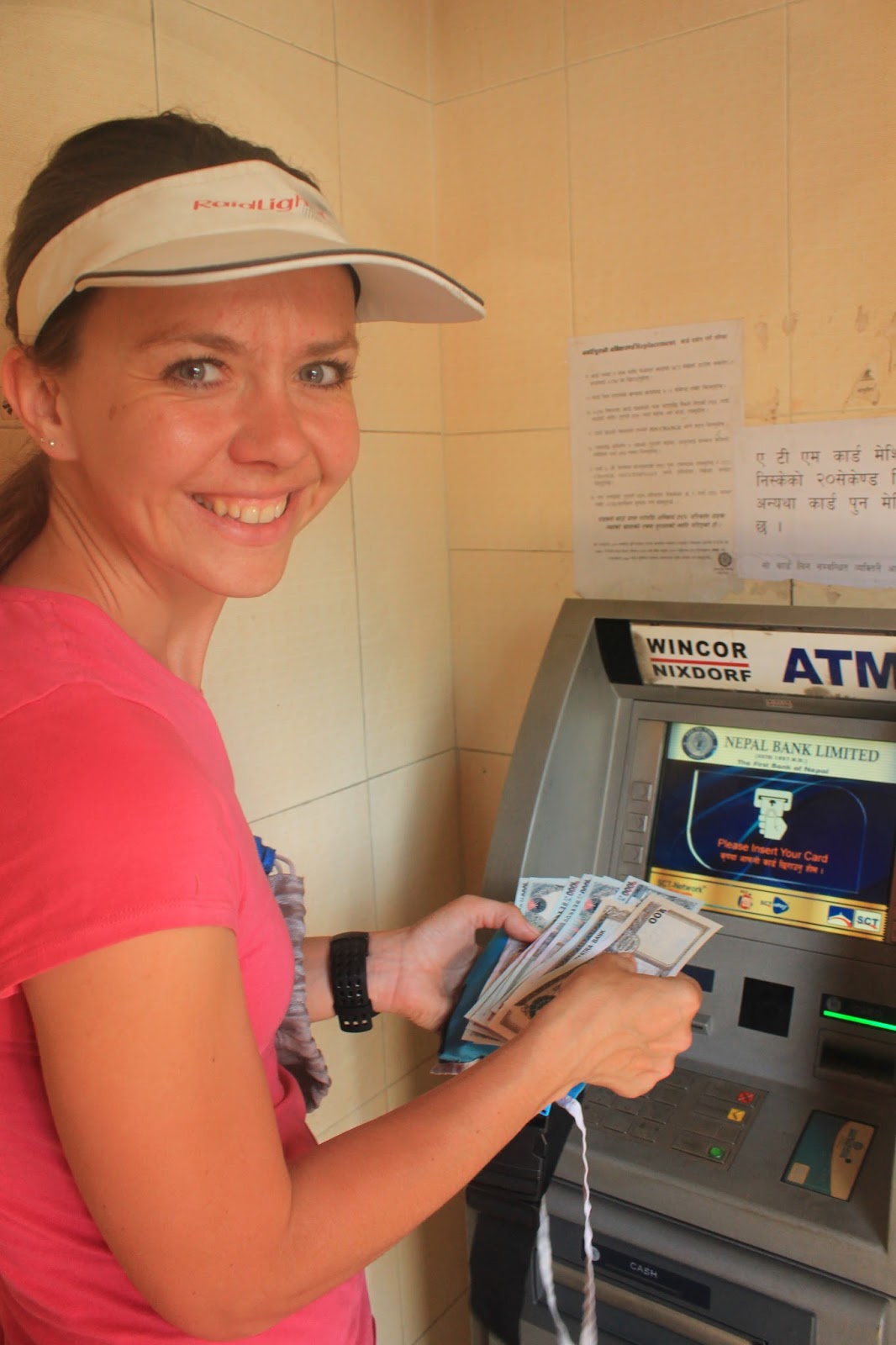 V Nepal sem šla z 400 eur v denarnici, saj po spletu okoliščin nisem mogla več dvigniti na bankomatu, na banko pa se mi ni ljubilo oz.nisem imela več časa. Po spletu okoliščin sem tudi v Kathmanduju pozabila dvignit denar na bankomatu in kasneje ugotovila, da ga tudi ne rabim, saj imam čisto dovolj denarja. Tina je imela precej več v rezervi, če bi nama zmanjkalo. Od teh 400 eur sem pokrila še viso (30eur), TIMS kart(17,5eur) in dovoljenje za nacionalni park Sagarmantha(25eur). Na koncu sem v Kathmanduju končno našla en bankomat za Maestro in dvignila 10.000Rp (85eur), to je največ koliko lahko dvigneš, da sem nakupila nekaj malega daril.