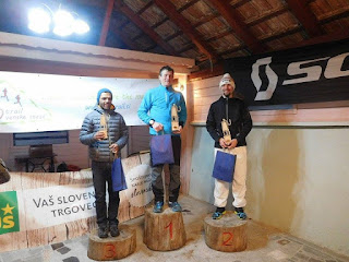 Po startu ob sedmi uri smo se zapeljali na njihovo prvo postojanko, na 10-em km, VRHE (planinska koča je bila zaprta, zato smo bili malo v dvomih, a smo sploh na pravem mestu). Na srečo sem imela track in mapo, tako da sem vedela, da smo na pravi poti. Kmalu zagledam Ivija, 6 minut za njim pa Tonija in Nina Fijačka. Toni mi naroči, naj nekako izoliram bidon, saj mu je zmrznila voda. Odbrzi naprej proti Čemšeniški planini, mi pa na naslednje mesto, nekje na 25-em km pod Sveto Planino. Grejemo se v avtomobilu, zunaj je še vedno -8 stopinj. Časa imamo veliko. Najprej zagledam eno punco in fanta iz krajše proge (očitno vodi punca absolutno), nato pa Marijo Trontelj, Petra Macuha in še tri v tej skupini. Zmedena sem, in ni mi čisto jasno kaj se dogaja, ampak nekaj ni prav… pa nismo menda Ivija in Tonija zamudili, saj smo že dolgo časa tukaj na tem mestu? Takoj pokličem Tonija, ki je odlično razpoložen, sploh se ne pritožuje nad mrazom, le kapo bo moral zamenjati, ker je čisto zledenela. Takoj mu je jasno, kje je peterica zgrešila in si za kakšnih 7 km skrajšala pot (niso šli na Čemšeniško planino). Žal mi je bilo, da se jim je to zgodilo, sploh Marija je z veliko prednostjo vodila v ženski kategoriji. Zagledam tudi Ivija, 13 minut za njim pa Tonija. Tast se po mojem malo čudi, da Toni že kar precej zaostaja za prvim, a mu povem, da je to čisto pričakovano, da to še nič ne pomeni. 🙂 Naslednjič se vidimo v Trbovlju pri tovarni Iskra, kjer si zaželi le wc papirja. Tukaj se kar preveč zaklepetam s Klavdijo, Klaro Bajec in Bogojem in med vožnjo do Koče na Kalu me malo stisne panika, da bom na naslednji okrepčevalnici zamudila Tonija. Sicer ima vse potrebno s seboj, dovolj napitkov, tudi gelov. . Zgodilo se je tako, da sem na Kalu, po osmih minutah v avtu zagledala Tonija, zamudila pa Ivija in tako nisem mogla sporočiti zaostanka. Počuti se še vedno odlično, zebe ga ne, geli so sicer čisto trdi, a tudi ta problem sproti rešuje, da ga zatlači pod telefon in ob kožo, da se vsaj malo ogreje. Naslednjič se bomo videli šele na cilju. Mi smo se iz Kala po “strašnih” ovinkih čez Čeče zapeljali do Trbovlja, s tastom sva šla na obisk k njihovim prijateljem. Tonija sem pričakovala med 14-15 uro, zato se nič ni mudilo. A 10 minut pred drugo uro me pokliče, predvidevala sem, da iz vrha Mrzlice, kjer brzi proti cilju, a on me je spraševal, kje je pivo!? “Kako to misliš, kje je pivo, pa ja, da nisi že v cilju?” “Ja, sem ja!” in se reži. 🙂 O moj bog, zamudila sva ga v cilju!! Grozno, pa tako sem si želela, da ga pričakava v cilju, a očitno je v zadnjem delu proge brzel kot zmešan, sploh ko sta se tik pod vrhom Mrzlice srečala z Ivijem (na žalost je Ivi na tem mestu zalutal zaradi napačno prestavljenih trakcev in menda izgubil vsaj 5 minut). Spust sta imela na nož .. na vse, kolikor noge dajo, vseh 7 km iz vrha Mrzlice pa do cilja! Toniju je ratalo prednost obdržati, vendar za zgolj 16 sekund, Ivi se ni in ni vdal! Bravo obema, odlična sta! Lepo je bilo srečati tekaške prijatelje, z njimi poklepetati ter se okrepčati v gostišču Brin, kjer so res prijazni, jota in jabolčni zavitki so pa tudi bili božansko dobri! Čestitke vsem tekmovalcem, ki so tako pogumno in z nasmehom borbali v res izjemno nizkih temperaturah! Bravo!