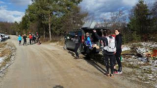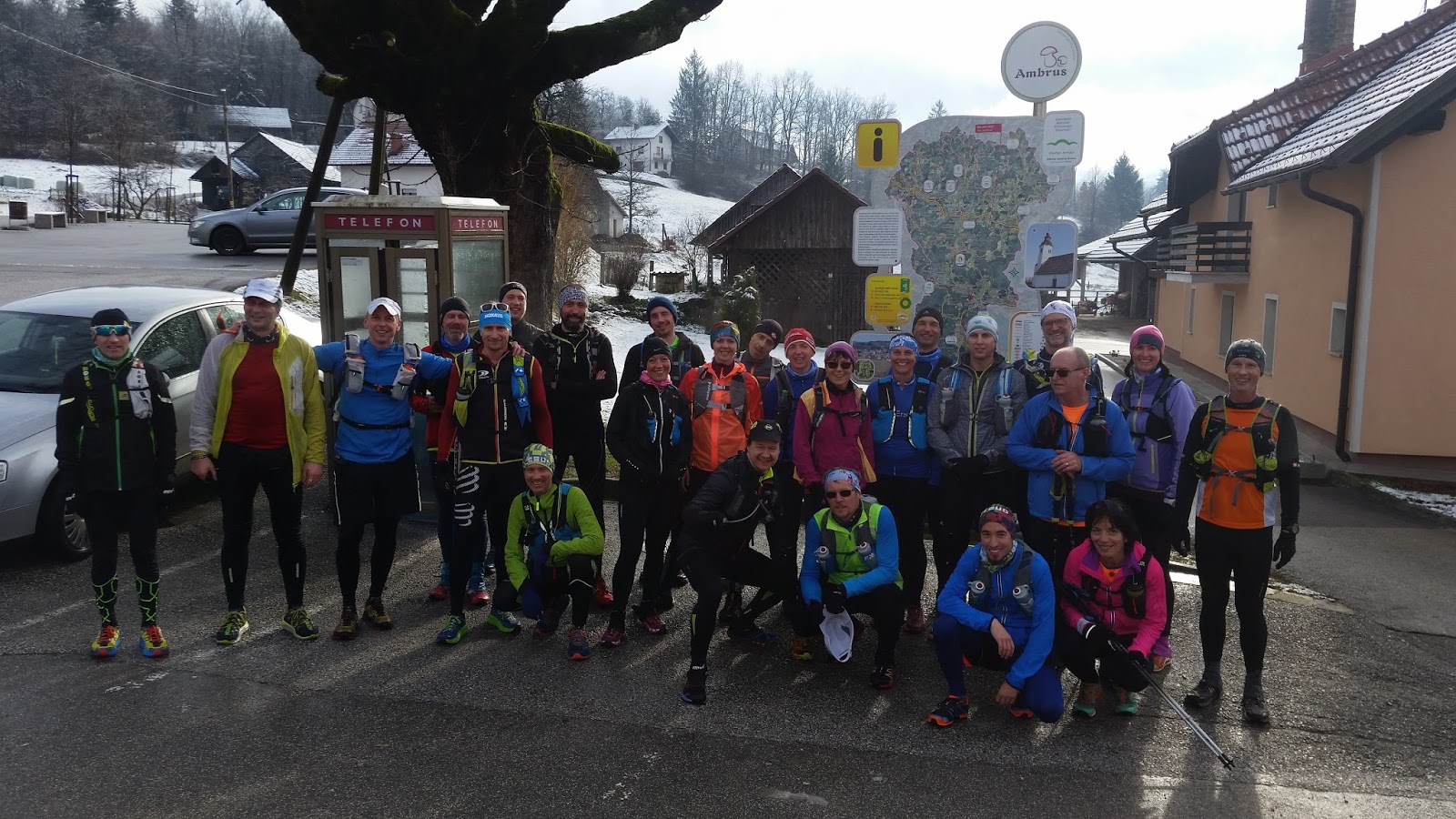 Zadnjo etapo so strpali mene (oz.sem se sama) v prtljažnik in ponovno smo se odpeljali na Krko na start. Zbralo se nas je 14 tekačev, nekaj meni novih obrazov. Vzdušje je bilo super, skoz smo se pogovarjali in se spoznavali. Kot bi mignil, smo po skoraj dveh urah bili v Višnji Gori, tako se je vsaj zdelo meni, kjer bi nas naj čakala okrepčevalnica. Toni je prišel minuto za nami. 🙂 Sledil je najlepši del poti – ob reki Kosci in Poti dveh slapov. Če smo v petek imeli zimske razmere, je v nedeljo vse dišalo po pomladi … na letošnjem Tektoniku smo imeli vse! Na zadnji etapi je bilo nebo brez oblačka, božansko lepi razgledi na naše Alpe ter zvončki, ki že kukajo iz zemlje. Na srečo sta punci, bolj cestni tekačici, ki sta prvič bili na kakem trailu, zelo uživali. Ob Kosci je bilo tudi precej blatno. Na naslednji okrepčevalnici, na 24-em km je Toni popravil svoje spremstvene napake in pripravil tako luštno okrepčevalnico s pestro ponudbo hrane in pijače, nam skuhal kavo, pripravil stolčke za počitek, da smo ponovno težko šli naprej. Današnji dan je bil na izpadanje in tukaj jih je dejansko nekaj izpadlo .. tisti, ki so že v štartu šli na krajšo razdaljo. Na žalost sta nas zapustila tudi Bogdan in Mateja, ki sta bila z nami vse etape, pretekla sta skupno skoraj 90 km. Čudovita sta! Nadaljevalo nas je še samo 7. Na Pristavi smo bili dogovorjeni za naslednjo / zadnjo okrepčevalnico, a kombija spet nikjer nisem videla. Kličem Tonija in ves presenečen: “Pa ne mi rečt, da ste že na Pristavi!?” Ponovno smo ga prehiteli .. biti v spremstvu res ni lahka stvar! 😉 Borut je rekel, da je letos veliko lažje pretekel vse tri etape in na koncu smo se pogovarjali, da sploh nismo preveč utrujeni, čeprav smo v treh dneh pretekli/prehodili dobrih 100 km in 3000 višincev. V tako dobri družbi je vse lahko. Zelo me je veselilo, da so vsi, ki so ta dan tekli, a nehali na 24-em km, počakali v klubu na nas, da smo skupaj zaključili že 6. samooskrbni Tektonik. In z nami je končno bila tudi moja mala princeska, saj je moja mami morala na dolgo pot v Radence.