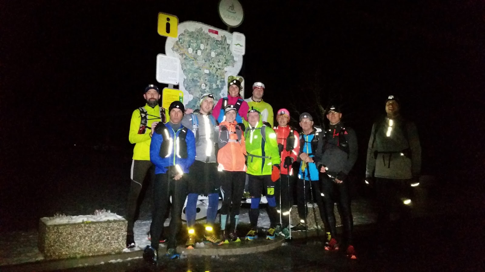 Petkovo popoldansko deževje se je malo pred začetkom Tektonika prevesilo v močno sneženje. Start prve etape je tako bil prav zimski, trasa že skoraj v celoti pobeljena. Startalo nas je 13, pričakovala sva jih precej več, a so priznali, da so se ustrašili vremena. Ker je Toni imel še nekaj priprav v klubu in je želel biti na okrepčevalnici v Sobračah, je zadnji trenutek mene zadolžil za navigacijo. Malo sem bila nepripravljena, a na srečo so me reševali aplikacija Oruxmaps ter Tonijev nečak Luka s prijateljem. Takoj v začetku sta potegnila naprej, z nami bi jima bilo prepočasi in nam tako puščala stopinje ter v snegu narisane puščice za pravo smer, kar nam je zelo olajšalo nočno navigacijo. Bilo je krasno, Bogdan in Mateja sta rekla NEBEŠKO! Sneženje je naredilo tisto piko na i, da nam bo prva etapa ostala v res lepem spominu. In kasneje je marsikomu bilo žal, da se je ustrašil vremena in ni bil z nami. Tudi večerna analiza je bila uspešna, letos sva dodela samooskrbo v smislu preskrbe s pijačo .. naložen hladilnih mrzlega pira je lahko vsak uporabljal samooskrbno .. kadarkoli in koliko koli. 🙂 Tonijev slogan “nikol še nismo šli, ne da bi še enga spili” je povzročil, da smo se ob enih zjutraj komaj poslovili. Katja in Andrej sta prespala v avtodomu, Borut, Marko, Aleš, Bogdan in Mateja pa v klubu.
