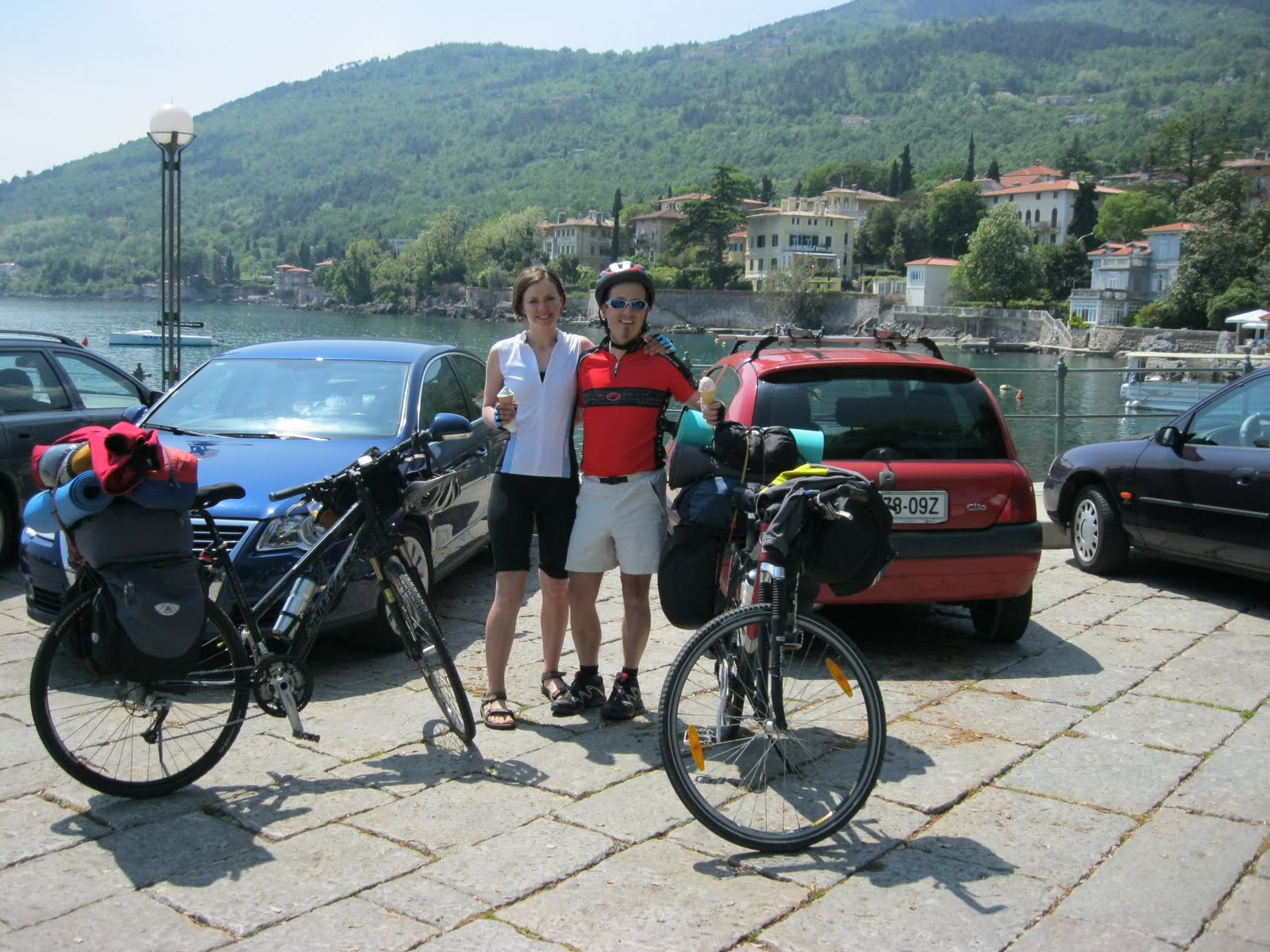 Še v petek, dan pred odhodom, sva bila prepričana, da greva s kolesom od doma (od Simona, iz Vrhnike) proti Rijeki oz. najbližjemu kampu. Pakiranje in planiranje je vzelo kar nekaj časa, zato je načrt kmalu propadel in naju zjutraj Vili odpeljal do meje – do Babnega polja, da se izogneva prometu čez Ilirsko. In klancem naproti, juhuu:) Prvič sem šla potovalno kolesarit, malo večje nestabilnosti kolesa zaradi prtljage sem se navadila zelo hitro. Na meji so naju gledali, kot da sva padla iz Marsa:)