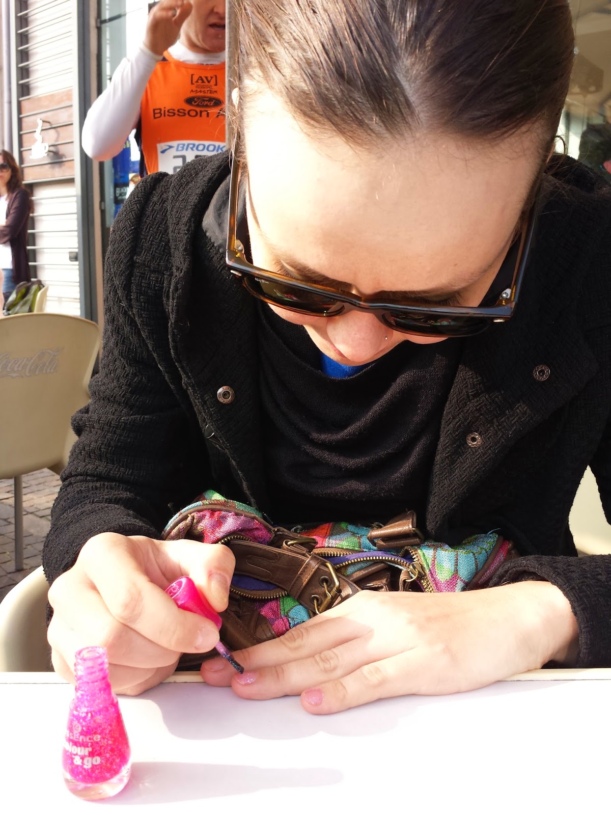 Na štartnem prostoru se takoj najdemo z ostalima dvema članoma naše družbe, Matjažem in Romanom ter Ano, ki ju spremlja. Izkoristimo priložnost za skupno slikco, nato pa v štartni prostor. Z Mihatom greva bolj naprej, ostali se ne želijo gužvat, a sigurno jim je kasneje bilo žal. Že midva sva za moje pojme bila preveč odzadaj, saj sem prvi dve uri tekla v preveliki koloni, večina poti je bila ozke in smo sploh v klanec počasi hodili en za drugim. Po eni strani mi je odgovarjalo, da sem šla počasi, z nizkim pulzom in šparala energijo, po drugi strani pa sedaj vem, da sem šla prepočasi in so mi na koncu “manjkale” te minute. Prvi dve uri sem zelo uživala, trasa mi je bila prijetna, po poljih, med vinogradi, po čudoviti zeleni travi… omamno dišeč čemaž na parih odsekih, sijal je sonček, mi smo tekli. Kaj si želiš lepšega? 🙂 Ne vem kje se mi je zalomilo, najprej po prvi postojanki, ko sem napolnila bidon, pozabila pa sem pit na sami okrepčevalnici in sem razmišljala ali bom imela dovolj tekočine do naslednje, 12 km oddaljene okrepčevalnice? A ni blo problema, sem imela dovolj vode. Na drugi okrepčevalnici spijem veliko coca cole in dotočim vodo. Čez par sto metrov ugotovim, da sem si dotočila mineralno vodo, saj mi kar vre iz bidona. Naslednjih 12 km sem primorana pit vodo z mehurčki. 🙂 Na 35, 5 km sem bila s časom 4 ure 20 minut, kar me je spravilo iz stanja zasanjanosti. Začela sem kalkulirat kaj pomeni ta moj čas in sem ugotovila, da bom težko prišla skozi v osmih urah, ki mi je nekako bil zadan cilj. Šaltala sem v drugo prestavo. Postojanke so bile zelo dobro založene, od pomaranč, banan, piškotov, pit, pršuta, sira, kruha, coca cole, mineralne vode, vode, piva… Pot je bila izredno lepa za tečt, določeni vzponi zelo strmi, prav tako strmi  spusti v dolino. Zelo dober trening pred Istra 100 milj, ki je 11. aprila, čez 25 dni. Tudi po petih, šestih, sedmih urah mi tempo ne upade, noben me ne prehiteva, jaz počasi lovim enega za drugim oziroma tečemo s parimi fanti kar nekako enakomerno ves čas. Na 57 km, pri zadnji okrepčevalnici, medtem, ko hodim v klanec, naposled pokličem Tonija po telefonu. Nekako sem naveličana monotonosti proge, ko bi vsaj bil kje kak razgled na morje ali visoke hribe. 🙂 Takoj, ko je dvignil telefon, sem bila kar naenkrat brez težav. Samo, da sem ga slišala. <3 (zaradi Istre bo z Mobitela prišel enormen račun, ker bom skoz na telefonu ;)) Čakala me je še ena ura teka do cilja. Naprej sem šla bistveno lažje, tudi v klance sem počasi tekla, zelo malo hodila. Aleluja, kmalu zagledam Vicenzo pod seboj, po številnih stopnicah dol do mesta, še par ovinkov po mestnih ulicah in prikazal se mi je ciljni prostor. Full je bilo navijačev in so pričarali res krasno vzdušje. V cilju je že čakal Miha. Sem bila prepričana, da je tam že najmanj pol ure, pa mi reče, da sem samo slabih 5 minut za njim prišla in rekel “Vidiš smotka, bi lahko skupaj laufala!” :).  Tek ni bil ravno lahkoten, a v cilju sem bila tako neskončno happy. Vse je bilo pozabljeno. 🙂 Ura se je ustavila na 7 ur 49 minut 49 sek, kar je zadostovalo za 8. mesto v ženski kategoriji. V ciljnem prostoru so nudili neomejeno količino piva in z Mihatom sva si postregla. 🙂 Šla sva se preoblečt in nazaj čakat naše fante. Prvi je prišel Matjaž, dobro uro za nama, nato Roman in Tilen, še dodatno uro kasneje ter kmalu še Simon. Luštno smo se imeli, vse skozi smo se hecali, vsi fenomenalno razpoloženi. Žal so nas Dolenjci hitro zapustili, mi pa naprej – na obilne in odlične testenine ter pivo. Glede hrane in pijače so se res potrudili. Medalj pa letos niso delili v cilju. Precej smo bili utrujeni, zato smo preskočili žur do jutranjih ur. Kot klade smo popadali v postelje, jaz sem si izbrala svoje mesto zgoraj na pogradu, a ko je bilo treba po ozkih stopničkah zlezt gor, mi je bilo silno žal, sploh pa ko je bilo treba zlezt dol….auč…noge so bile kar utrujene, boleli so me nohti na nogah, najmanj dva se bosta spet kmalu poslovila. Pri tekačih nohti na nogah pač niso ravno najlepši del telesa. 😉 Ob šestih zjutraj smo vsi že bedeli, dovolj nam je blo počivanja, hitro na zajtrk in na sprehod po mestu. Center je spet bil poln tekačev, saj so imeli neko krajše tekmovanje, mislim da 5 in 10 km ter pohod. Na poti domov smo se ustavili še v Izoli, se malo sprehodili ob obali ter se okrepčali z  odličnimi picami v Primaveri. Res perfekten vikend v prekrasni družbi! Hvala vam!