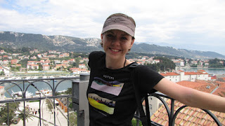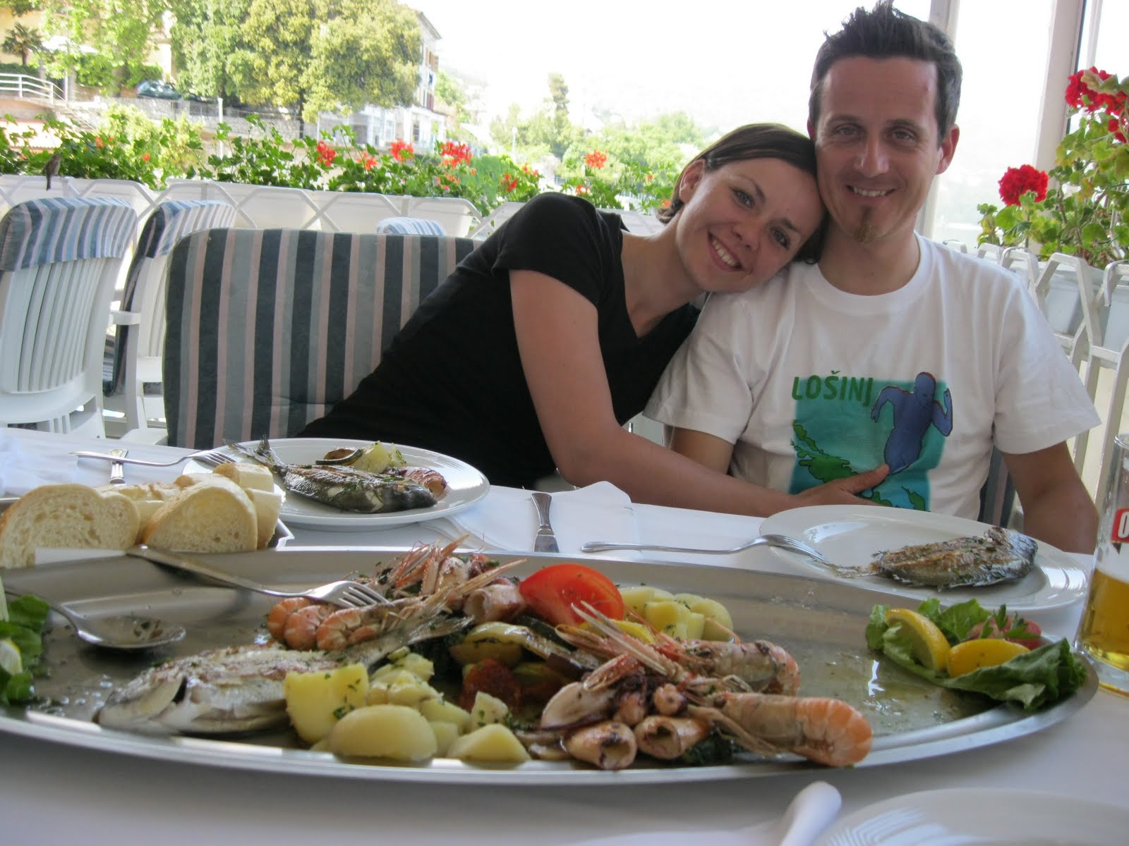 Dan kolesarskega počitka sva izkoristila za tek. Kolo sva potrebovala le kot transportno sredstvo do prizorišča maratona v Velem Lošinju in za kruzanje ob obali. Čudovit tek ob morju. Zjutraj nama je skoraj burja odpihnila šotor, saj nisva mogla zabiti klinov zaradi kamenja in deževalo je. Kmalu po startu pa nas je osrečil še sonček. Teklo nas je samo nekaj čez 80 in kljub začetnemu občutku, da bo vse potekalo bolj po balkansko (od št. 80 naprej nas ni imelo čipov, ker niso pričakovali take udeležbe), je na koncu izpadel kot fenomenalno organiziran maraton. Dali so vse od sebe in se maksimalno potrudili. Organizator je bil zelo zadovoljen, saj so tekli reprezentanti Srbije, Bosne, Madžarske, naš Primož Kobe (ki žal ni prišel do cilja), dva Etiopijca…skratka močna udeležba, kljub majhnemu številu ljudi. Opazila sem tudi slovenskega ultramaratonskega tekača Lojzeta Primožiča. Dobili smo majčke in medalje že ob prijavi. Na prvi tretjini poti, ko smo tekli čez center Malega Lošinja so imeli postavljen oder in muziko in celo fešto. Brali so naša imena in štartne številke, ko smo tekli mimo in navijali za nas in nas vpodbujali. Omg, noro je blo. In potem naprej v klančke ob obali Čikata. Najlepši tek v mojem življenju, brez muzike, ker mp3 je ostal doma in bilo je super. Kljub klancem in progi, težji od Sežane, sem v cilj prišla 1:49, kar je moj najboljši rezultat. Simon pa samo minutko za mano. Zelo sem bila zadovoljna. Zastojn so točili pivo, vino, brezalkoholne pijače, delili domač štrudelj, limone in pekli slastne ribe na žaru ter testenine in jagnjetino. Vse zastojn. Noro dobro vzdušje. Ogromno Slovencev. In ker je teklo zelo malo žensk, sem bila počaščena še z zlato medaljo v ženski kategoriji do 30 let. S tako slabim časom se mi je to lahko zgodilo samo tukaj:) Ampak je bil nor feeling in pogum za naprej. Mogoče sem se zato včeraj prijavila na Maraton treh src in sicer na 42 km, kot je bil prvoten plan. 🙂
