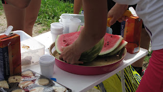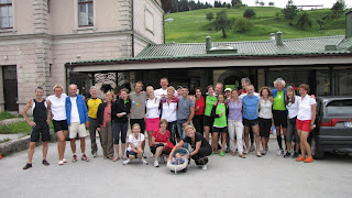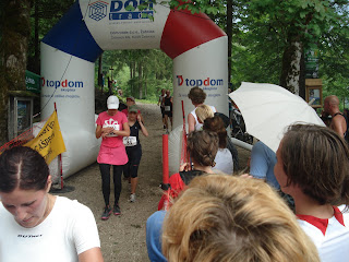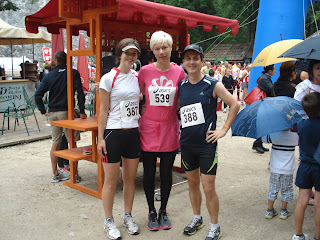 Včeraj smo tekli na Teku štirih srčnih mož okoli Bohinjskega jezera, ki meri približno 12 km. Pretekla sva jih v 55.-ih minutah. Srečala sva kar nekaj znancev iz preteklega vikenda z Urbanimi tekači, Zorana iz Lošinjskega polmaratona, Viteze dobrega teka in še koga iz kakšnih drugih tekov. Trasa je bila lepa, okrog celega Bohinjskega jezera, zahtevala je pa kar precej pazljivosti, gledali smo bolj v tla in pazili da se ne spotaknemo ob kako korenino ali spolzko kamenje. Vreme nam je malo ponagajalo, padla je kakšna kaplja,  ki pa je v takem soparnem dnevu bila kar dobrodošla. Vendar pa ni odvrnilo najkorajžnejših, da se ne bi po teku vrgli v jezero. Mi smo se odločili za Aqua park v Bohinjski Bistrici, da bi nam vroča voda vrnila moči v mišice, posebej Karin, ki je komaj še hodila zaradi bolečin v kolenu. Sprejeli smo slabo odločitev. Bazen je bil poln, sumljivo nam je bilo že, ko smo komaj našli prosto omarico. Potem pa je bilo še treba poštekat elektronski način zaklepanja omaric. S sabo sem vzela Križnarjevo knjigo Z biciklom okoli sveta, pa je nisem mogla brati, saj nismo našli niti enega prostega ležalnika. Katastrofa. Voda mrzla, noter in zunaj, vsepovsod. Bili smo premraženi in utrujeni. Kar preslikala bi se v naše Terme Radenci, ki so zakon za regeneracijo po teku. Imaš vroče bazene, masaže in proste ležalnike :). Po petih minutah trpljenja v mlačni vodi smo šli na gobovo juho (vsaj ta je bila zelo dobra), vroč čaj in proti domu. V aqua park nikoli več! Zvečer smo se družili z Nacetom in Martino, ki sta obrazložila dogodivščine njunega potovanja London-Lizbona-Pariz, midva pa načrte za septembersko kolesarjenje okrog Sicilije. Lepo je imeti takšne prijatelje! Sprehodili smo se po mestu, pojedli slastne čevapčiče v Harambaši in zaključili s pirom na Trnfestu.