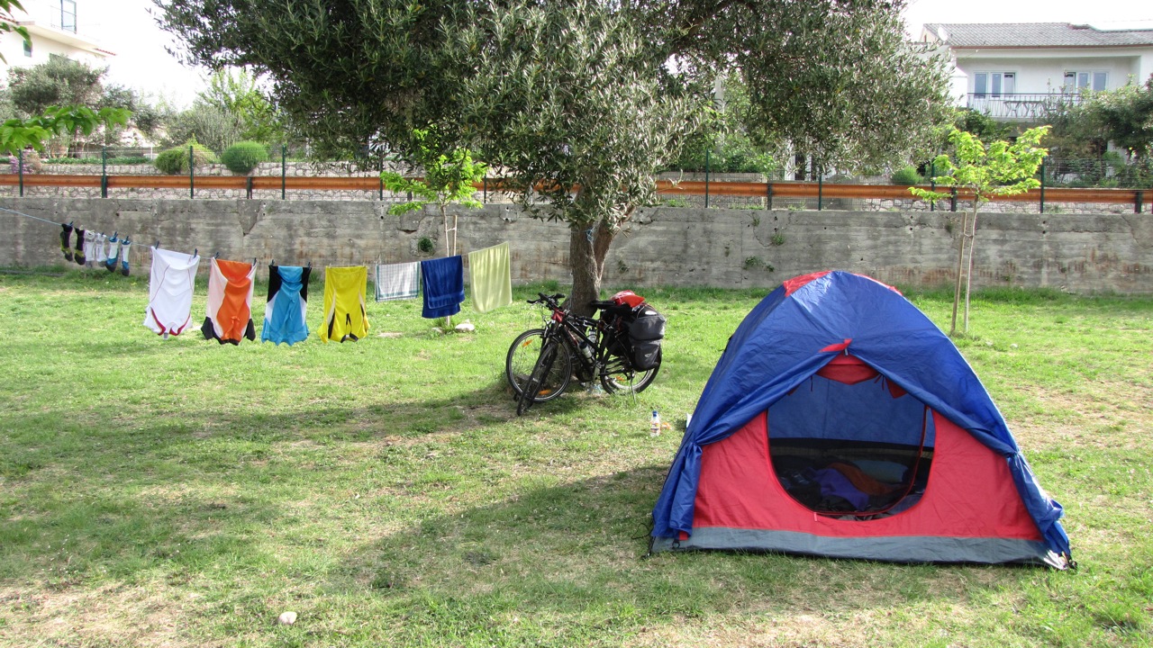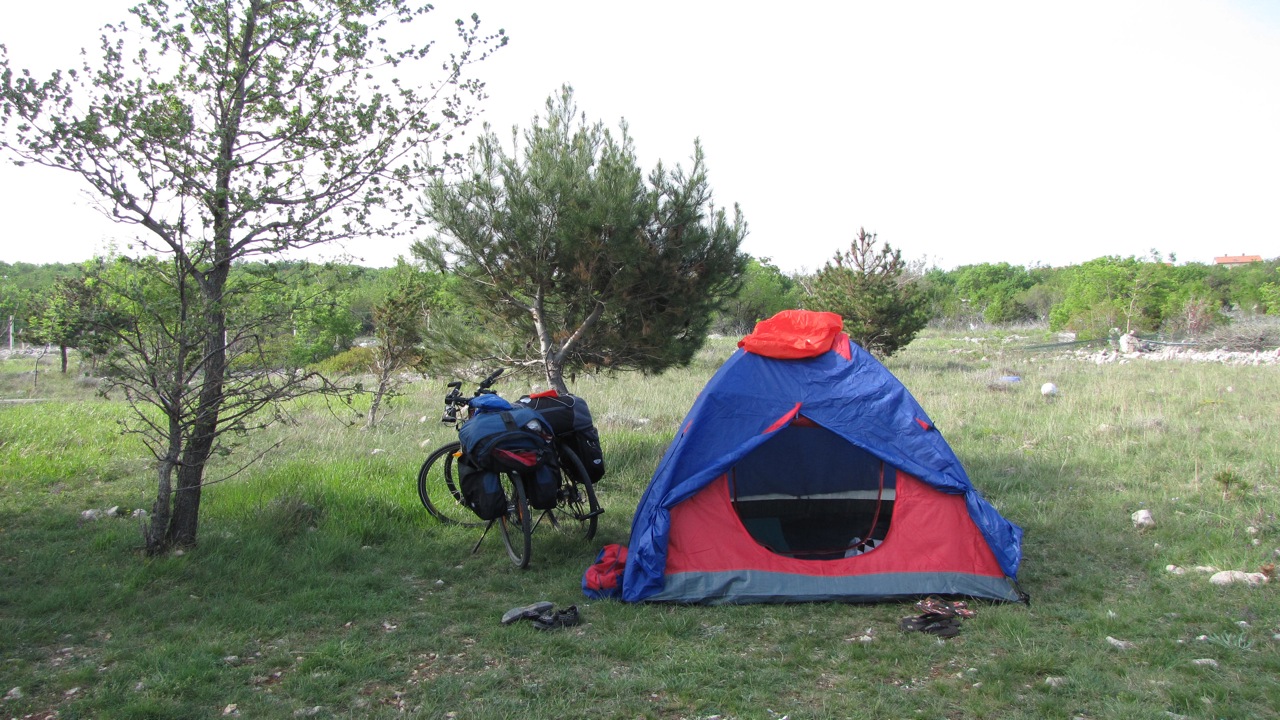 Slabo vreme, burja, klanci po Jadranski magistrali, dež. V kampu Straško postavila šotor par metrov od morja. Čudovit razgled. Mirno. V Novalji srečala znance, ki so tekli mimo in se samo za glavo držali, da sva s kolesom iz Slovenije in da greva še naprej. To nobenemu na kraj pameti ne bi prišlo, da bi bli kje drugje kot v nadstandardnem apartmaju. Nama je pa v šotorčku bilo prav toplo. Ptički so naju zbujali že ob svitu in že sva kuhala kavico in se prepuščala poti in dogodivščinam novega dne.